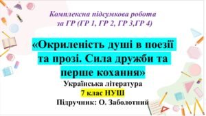 Комплексна підсумкова робота (КПР) з української літератури за чотирма групами результатів з теми: «Окриленість душі в поезії та прозі. Сила дружби та перше кохання» (підручник В. Заболотний)