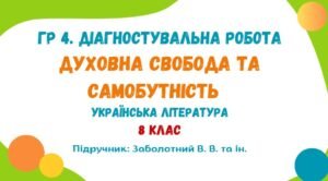 ГР 4. Діагностувальна робота №2. Духовна свобода та самобутність. Українська література. 8 клас НУШ (підручник: Заболотний В. В. та ін.).