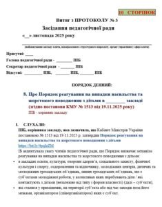 ПРОТОКОЛ ЗАСІДАННЯ КОМІСІЇ З РОЗГЛЯДУ ВИПАДКІВ НАСИЛЬСТВА ТА ЖОРСТОКОГО ПОВОДЖЕННЯ З ДІТЬМИ (ЗГІДНО ПОРЯДКУ ПОСТАНОВИ КМУ ВІД 19.11.2025 РОКУ № 1513) (10 сторінок)