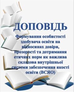 ДОПОВІДЬ Формування особистості здобувача освіти на відносинах довіри, прозорості та дотримання етичних норм як важлива складова внутрішньої системи забезпечення якості освіти (ВСЯО) (12 сторінок)