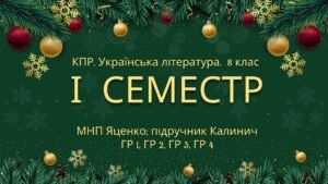 Комплексна підсумкова ( 1 СЕМЕСТР) робота з української літератури для 8 класу ГР 1, ГР 2, ГР 3, ГР 4 за модельною навчальною програмою Яценко; підручник Калинич.