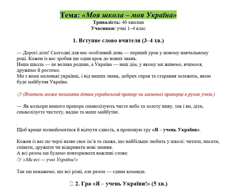 Матеріали «Перший урок 2025-2026 н.р “Моя школа-моя Україна!” 1-4 клас» будуть надіслані в електронному вигляді на вашу поштову скриньку одразу після оплати.