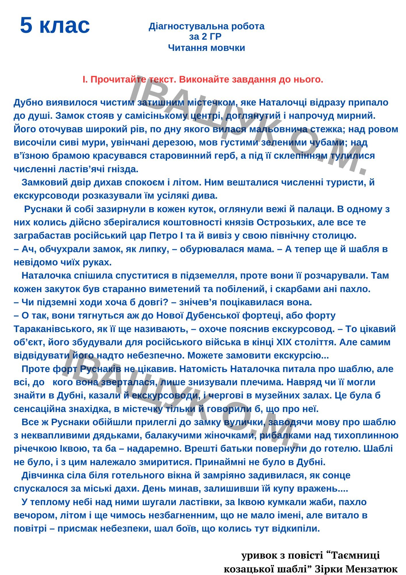 Підсумкова діагностувальна робота №1 за ГР3 для 5 класу з української мови за темою: ВСТУП. ПОВТО...