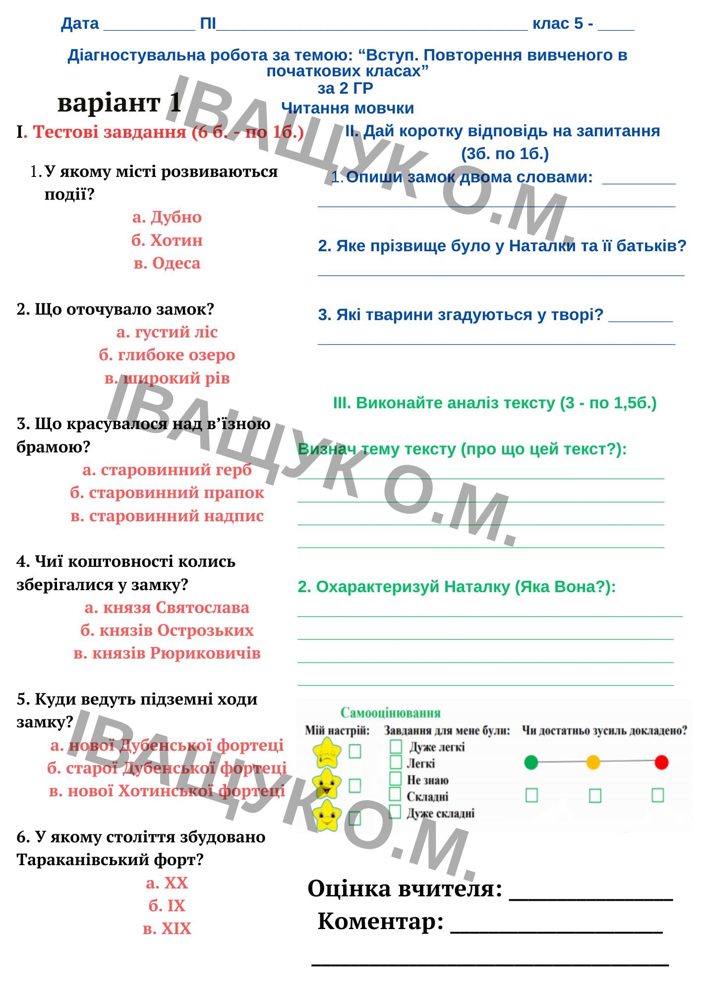 Підсумкова діагностувальна робота №1 за ГР1 для 5 класу з української мови за темою: ВСТУП. ПОВТО...