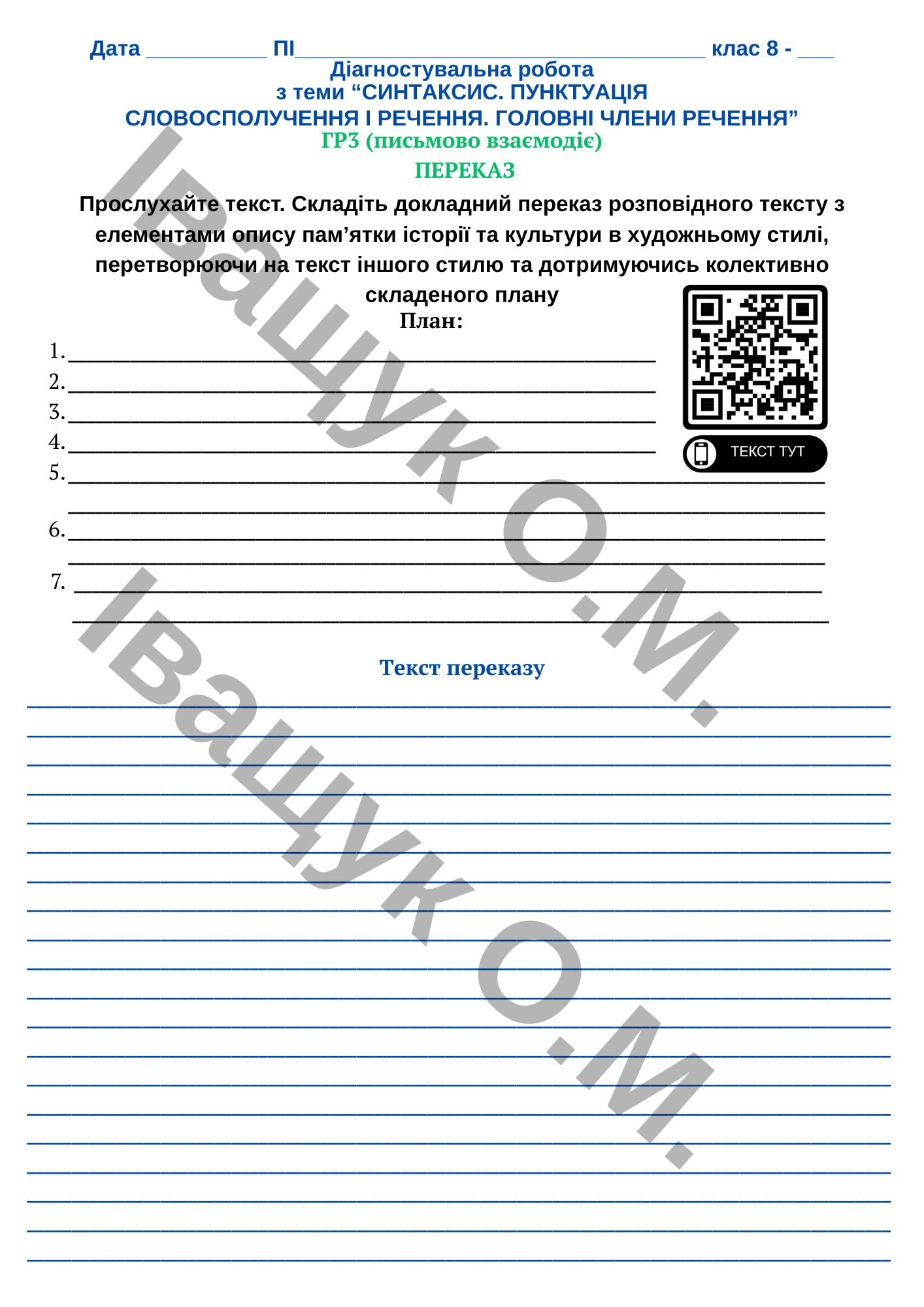 Чи можна купити «Підсумкова діагностувальна робота №2 за ГР3 для 8 класу з української мови за темою: СЛОВОСПОЛУЧЕННЯ І РЕЧЕННЯ. ГОЛОВНІ ЧЛЕНИ РЕЧЕННЯ» в друкованому вигляді?