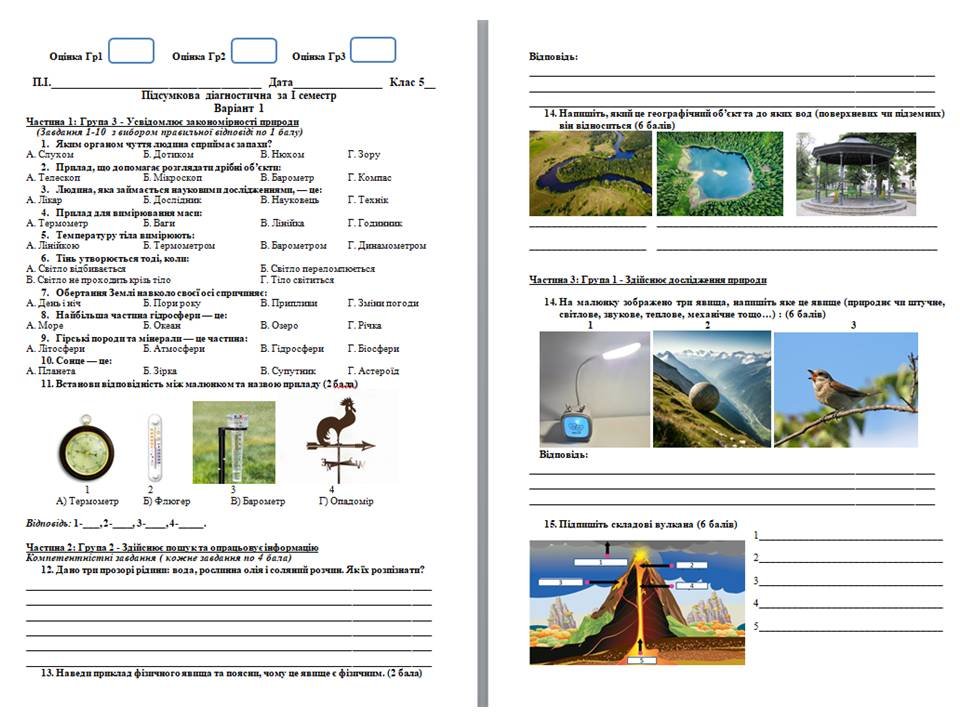Підсумкова діагностична за І семестр 5 клас пізнаємо природу