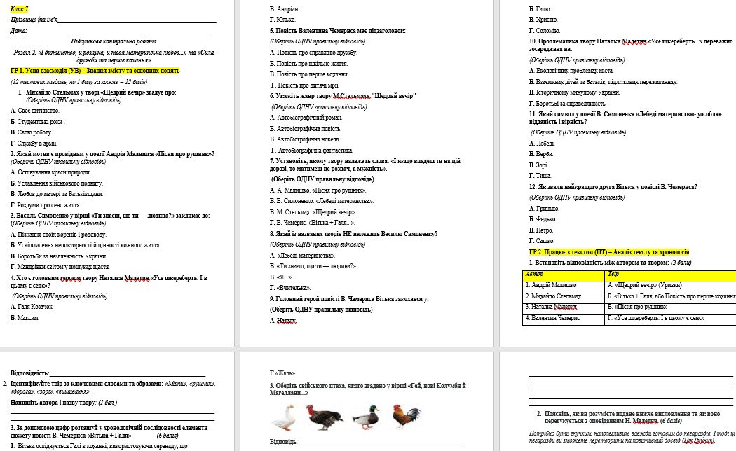 Матеріали «Підсумкова контрольна робота Розділ 2. «І дитинство, й розлука, й твоя материнська любов…» та «Сила дружби та перше кохання»» будуть надіслані в електронному вигляді на вашу поштову скриньку одразу після оплати.