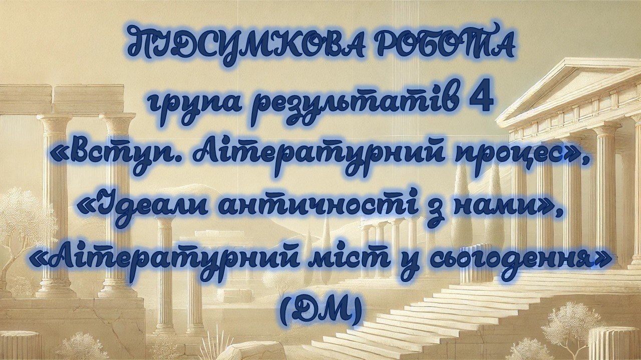 Підсумкова контрольна робота «Вступ. Літературний процес», «Ідеали античності з нами», «Літературний міст у сьогодення» за 4 гр., 8 клас з відповідями