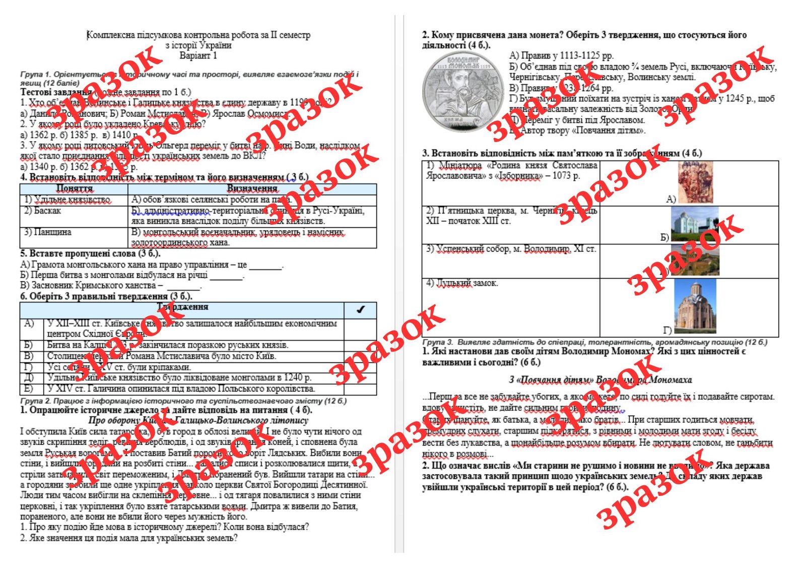 Як купити матеріал «Підсумкова контрольна робота за 2 семестр з історії України 7 клас (за підручником О. Пометун)»?