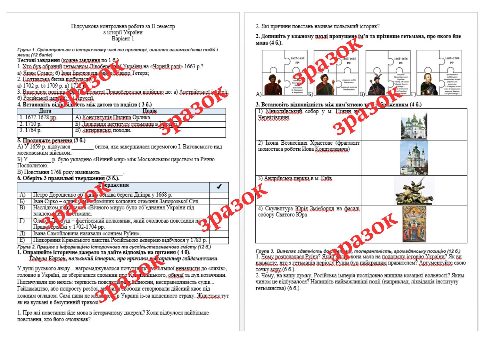 Як купити матеріал «Підсумкова контрольна робота за II семестр з історії України (за підручником І. Щупака) екстернат»?