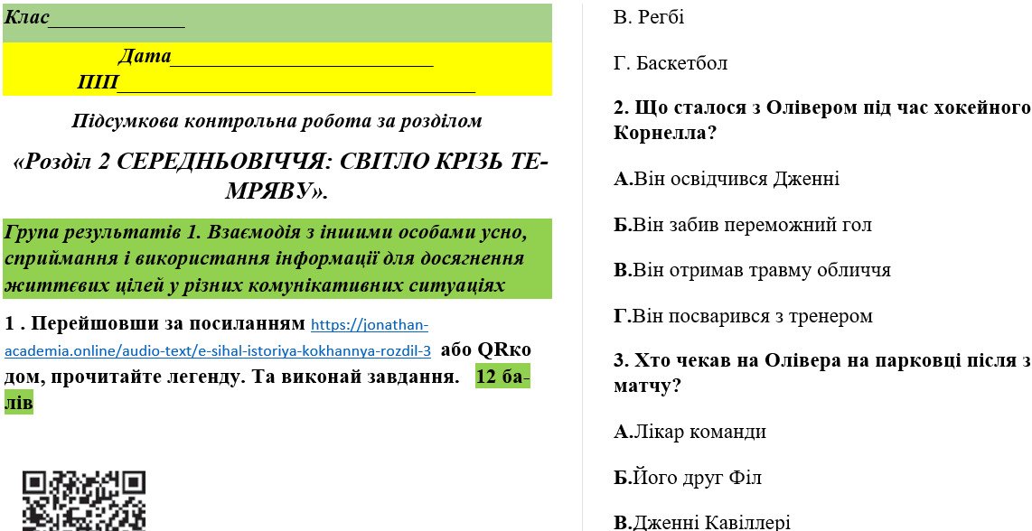 КОМПЛЕКСНА ПІДСУМКОВА РОБОТА за темою “Не здаватися в життєвих випробуваннях” (6 кл.)