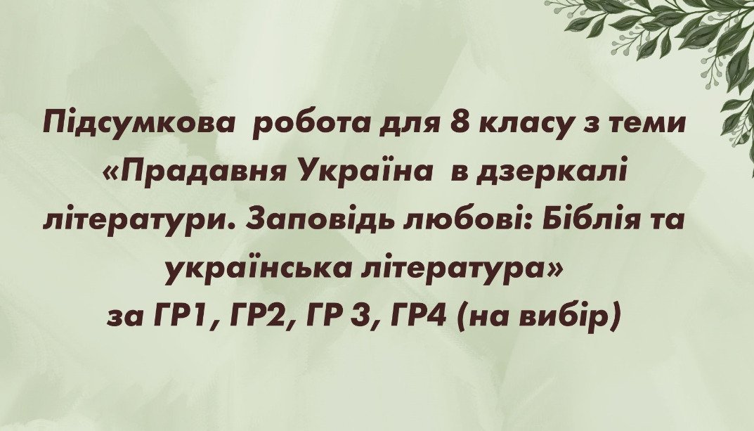 Підсумкова робота для 8 класу з теми «Прадавня Україна в дзеркалі літератури. Заповідь любові: Біблія та українська література»