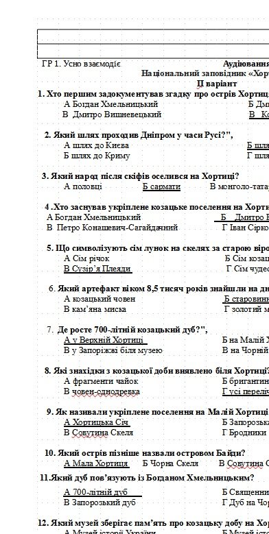 Аудіювання тексту “Національний заповідник “Хортиця”.