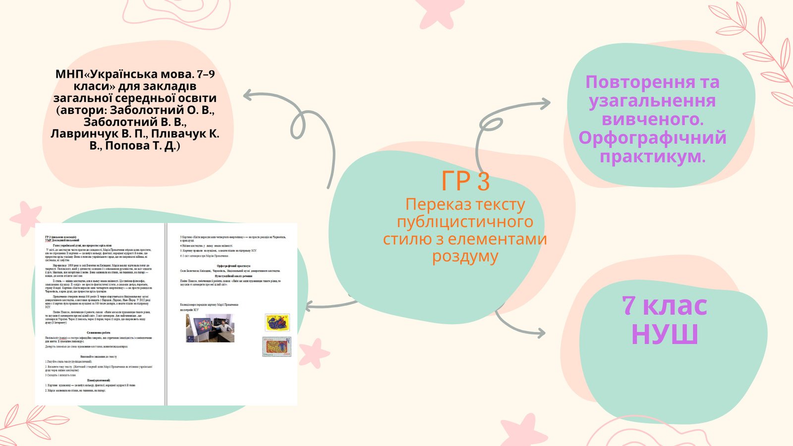 ГР 3. Підсумкова робота. Письмовий переказ тексту із творчим завданням (МНП: Голуб Н. Б. та ін.).
