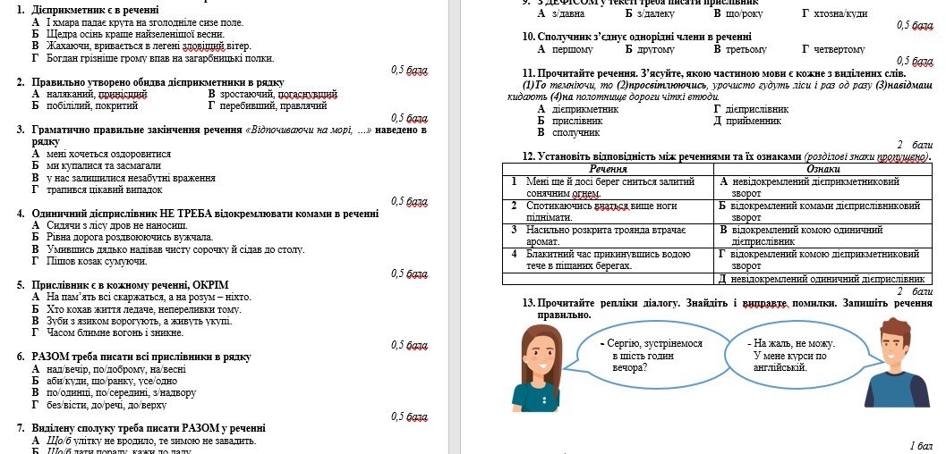 У комплекті є відповіді, критерії оцінювання, самооцінювання.