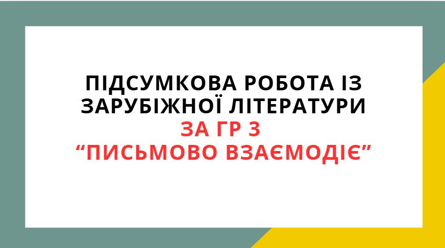 ПІДСУМКОВА РОБОТА ІЗ ЗАРУБІЖНОЇ ЛІТЕРАТУРИ ЗА ГР 3 “ПИСЬМОВО ВЗАЄМОДІЄ” 5 КЛ.