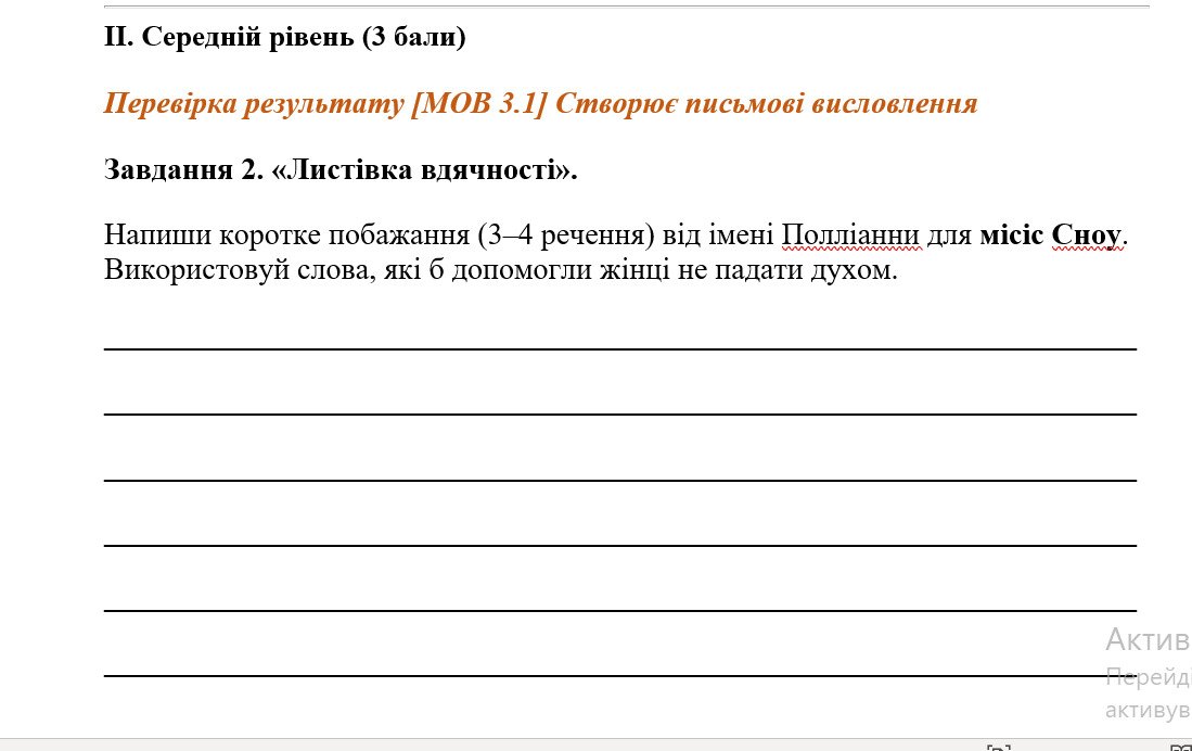 - Середній рівень: Перевірка результату [МОВ 3.1] Створює письмові висловлення.