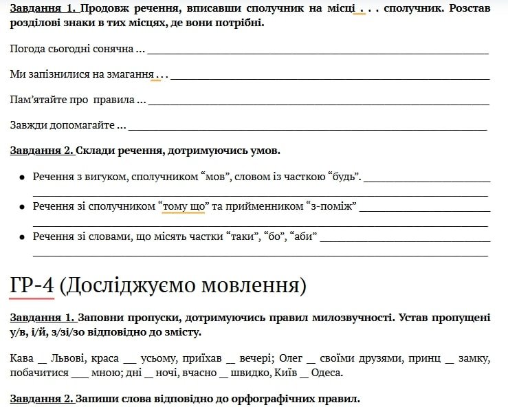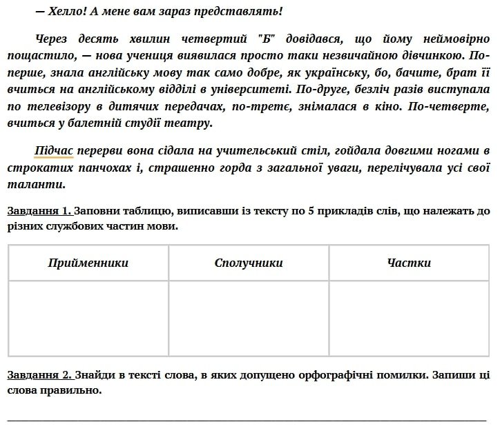 Підсумкова робота за ГР4. СЛУЖБОВІ ЧАСТИНИ МОВИ. 7 клас_Заболотний О. В. та ін.; Голуб Н. Б., Гор...
