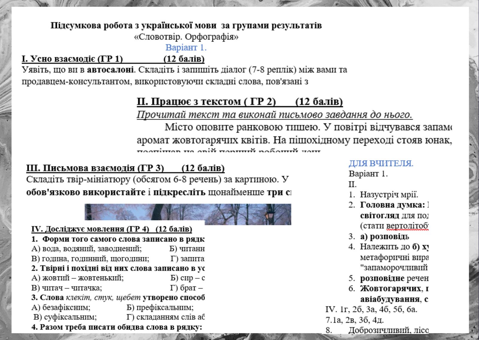 Як купити матеріал «Підсумкова робота за 4-ма групами результатів з української мови для 6 класу за темою “Словотвір. Орфографія”.»?