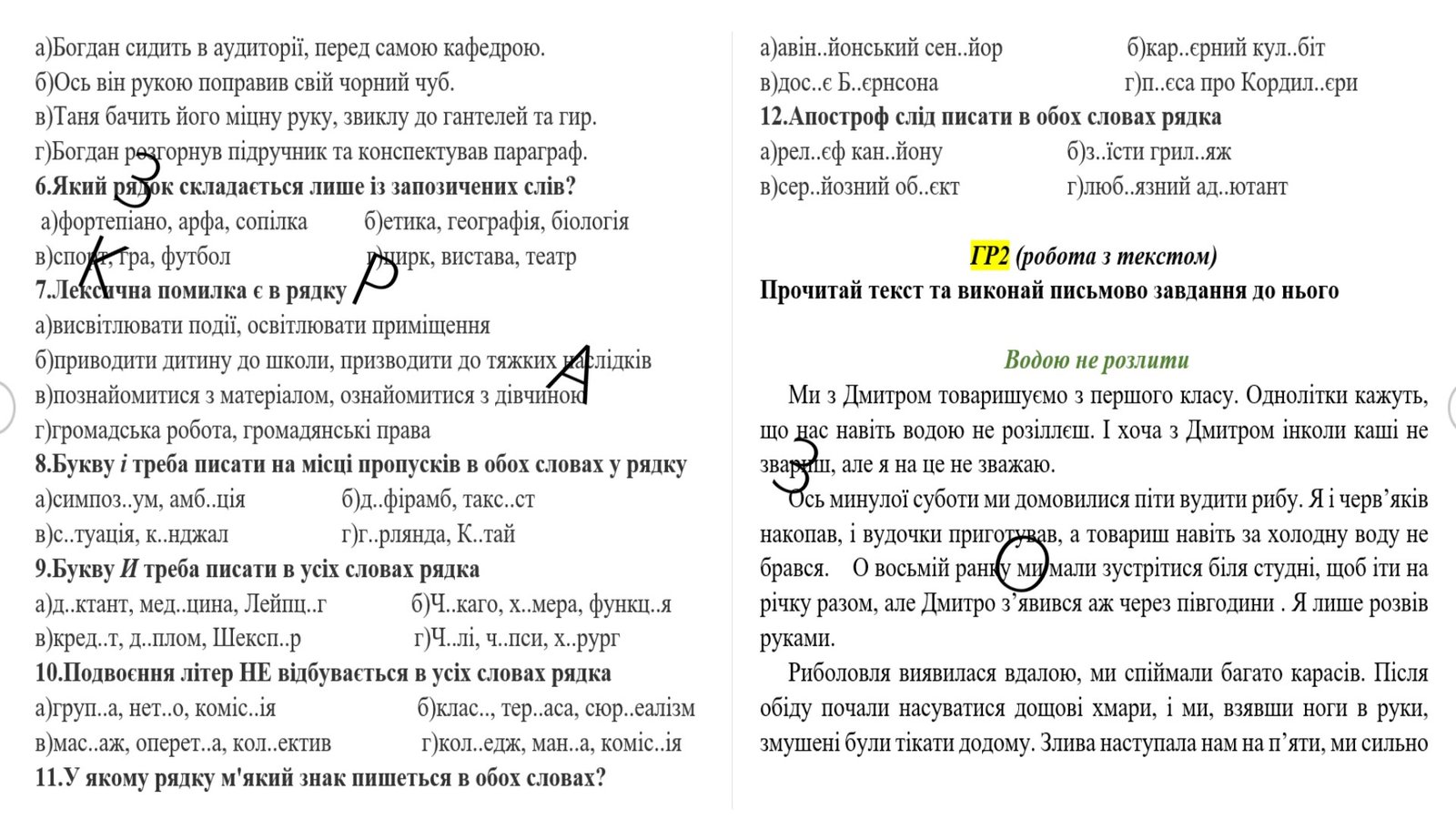 ГР 2. Підсумкова (діагностична) робота. 6 клас. Українська мова “Лексикологія. Фразеологія&...