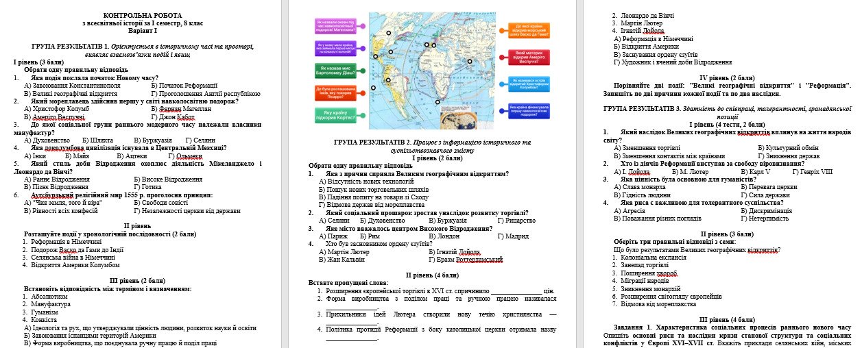 ПКР з всесвітньої історії 8 клас НУШ за І семестр. Підходить до авторів Щупак І., Пометун О, Ладиченко Т. Контрольні розроблені за групами результатів, кожна група розроблена за навчальними рівнями. Робота містить два варіанти і відповіді до них.
