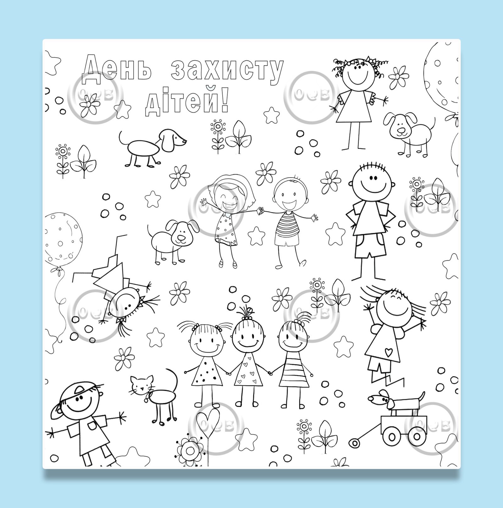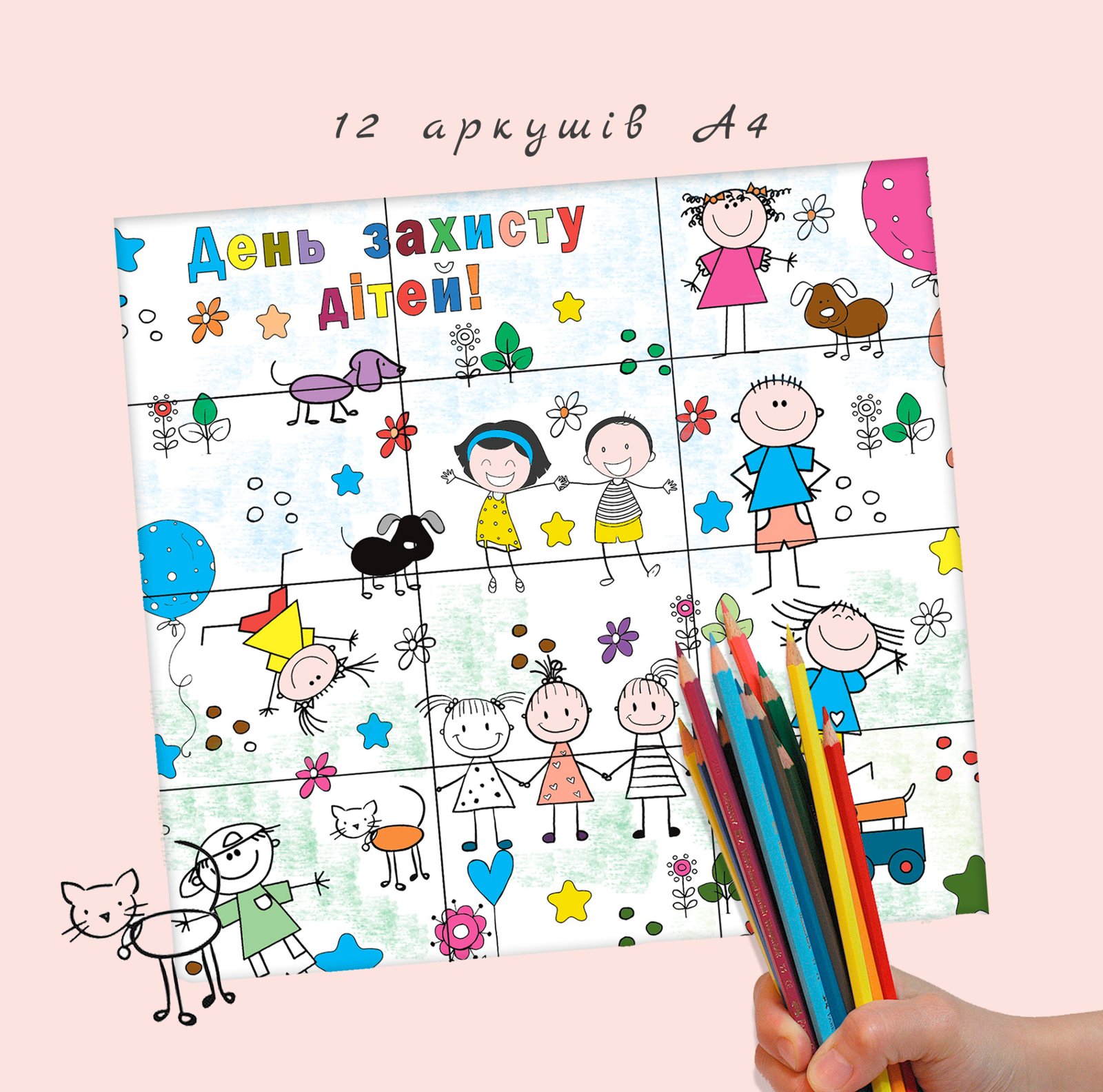 Плакат-розмальовка «День захисту дітей» (розділений на 12 аркушів A4, PDF)