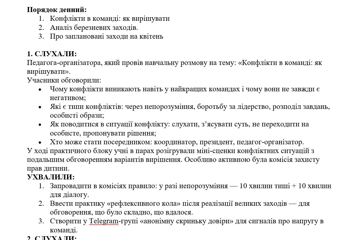 План роботи учнівського самоврядування (з протоколами) на 2025/2026 навчальний рік