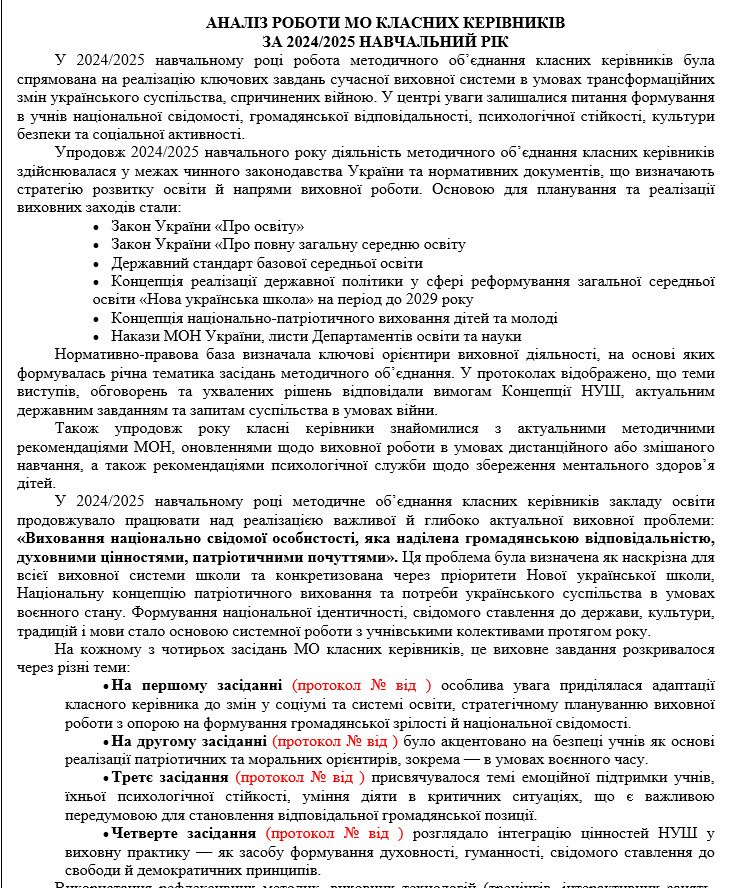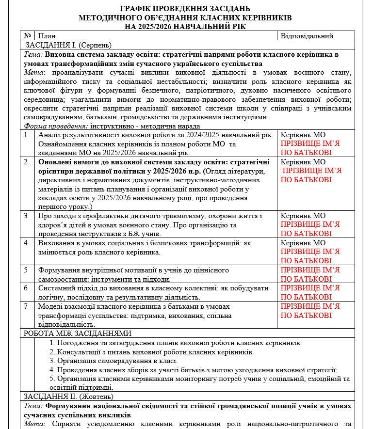 Матеріали «План роботи (з протоколами) методичного об’єднання класних керівників на 2025/2026 навчальний рік» будуть надіслані в електронному вигляді на вашу поштову скриньку одразу після оплати.