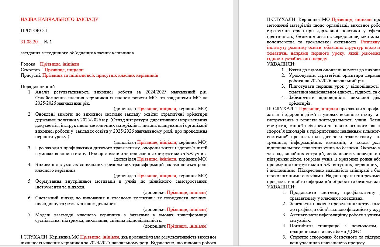 Як купити матеріал «План роботи (з протоколами) методичного об’єднання класних керівників на 2025/2026 навчальний рік»?