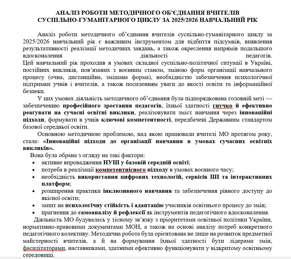 План роботи шкільної методичної комісії (МО) вчителів суспільно-гуманітарного циклу на 2024-2025 н.р