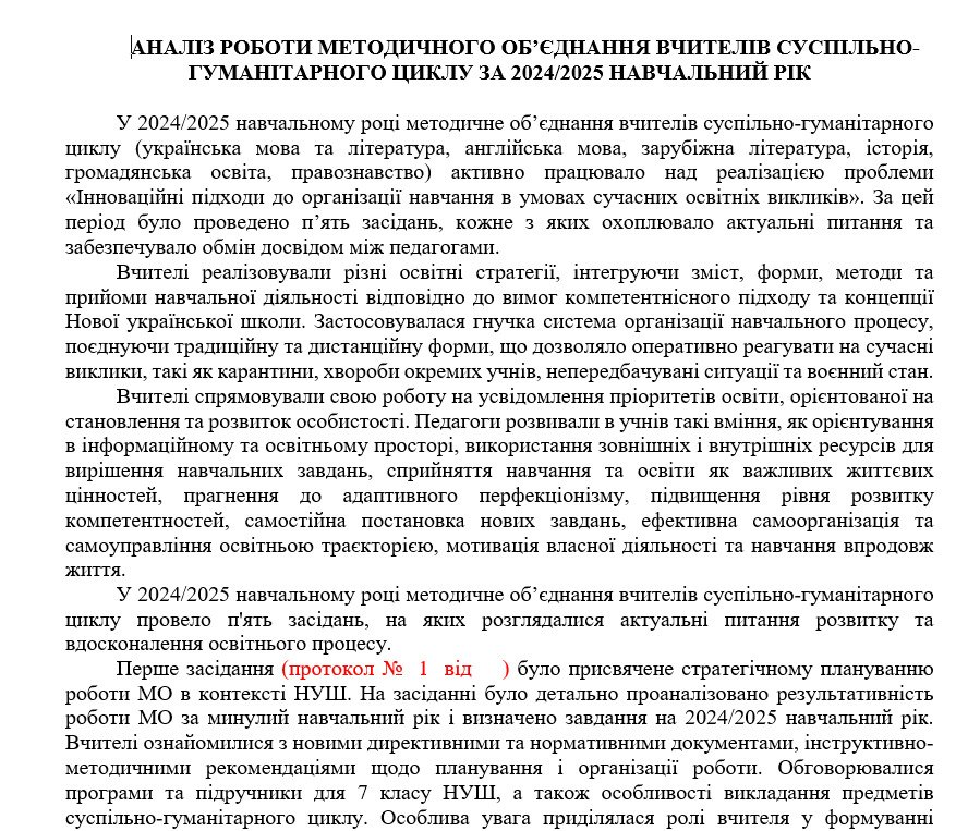 Планування роботи МО вчителів суспільно-гуманітарного циклу на 2024-2025 н.р. (план+протоколи)