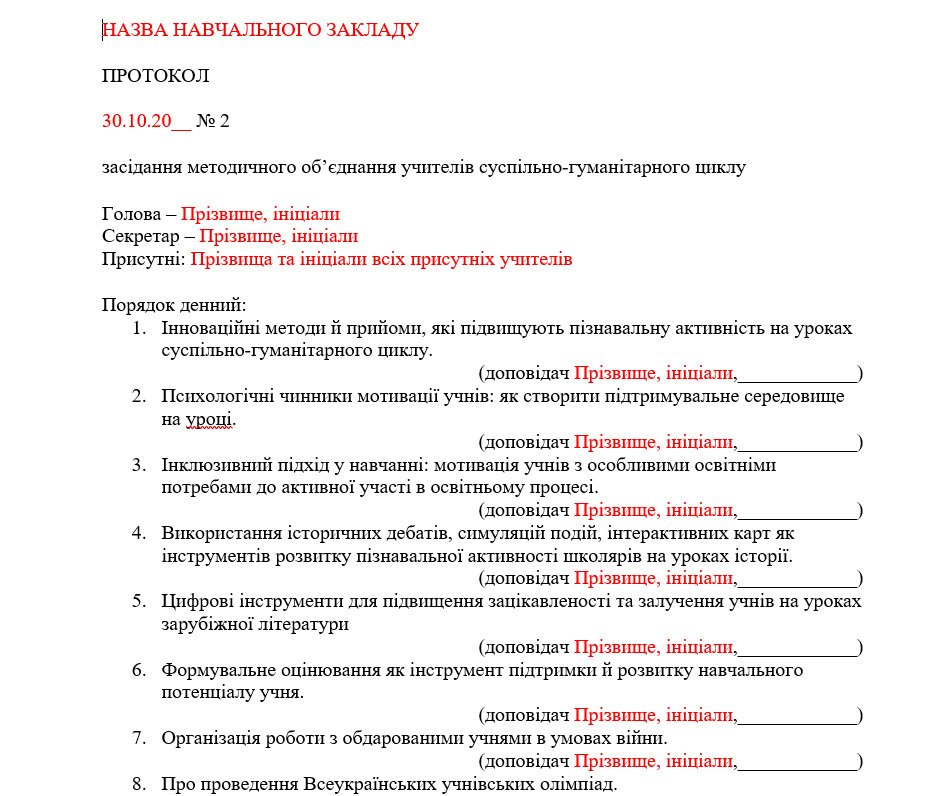 Протоколи засідань ШМО вчителів суспільно-гуманітарного циклу: “Хроніки гуманітарного фронт...