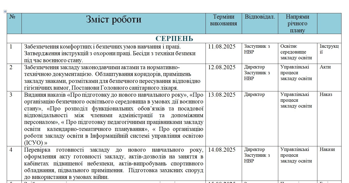 РІЧНИЙ ПЛАН ЗАКЛАДУ ОСВІТИ НА 2025-2026 НАВЧАЛЬНИЙ РІК. (відповідно до АБЕТКИ ДИРЕКТОРА) (214 СТО...