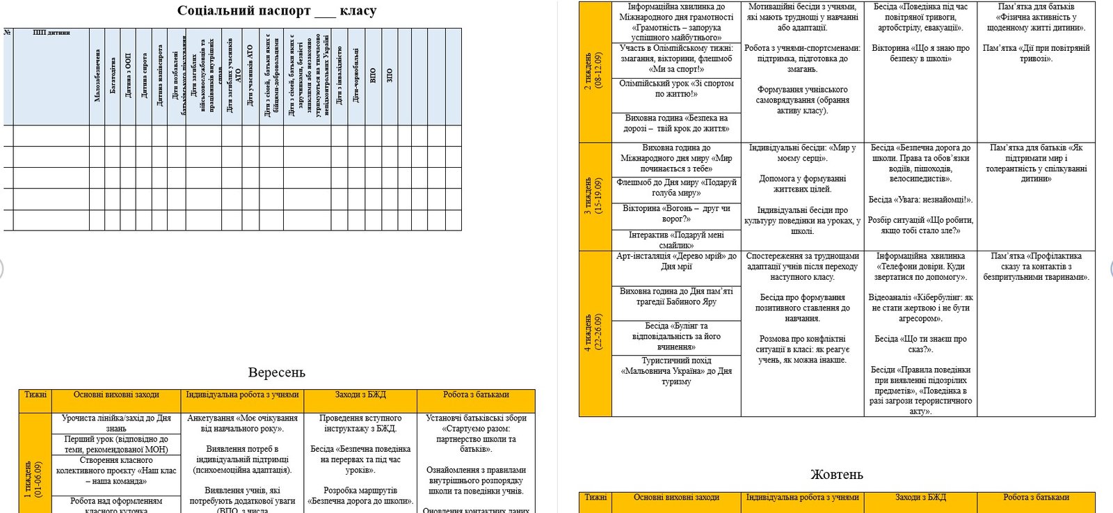 Планування помісячне (з вересня по травень).