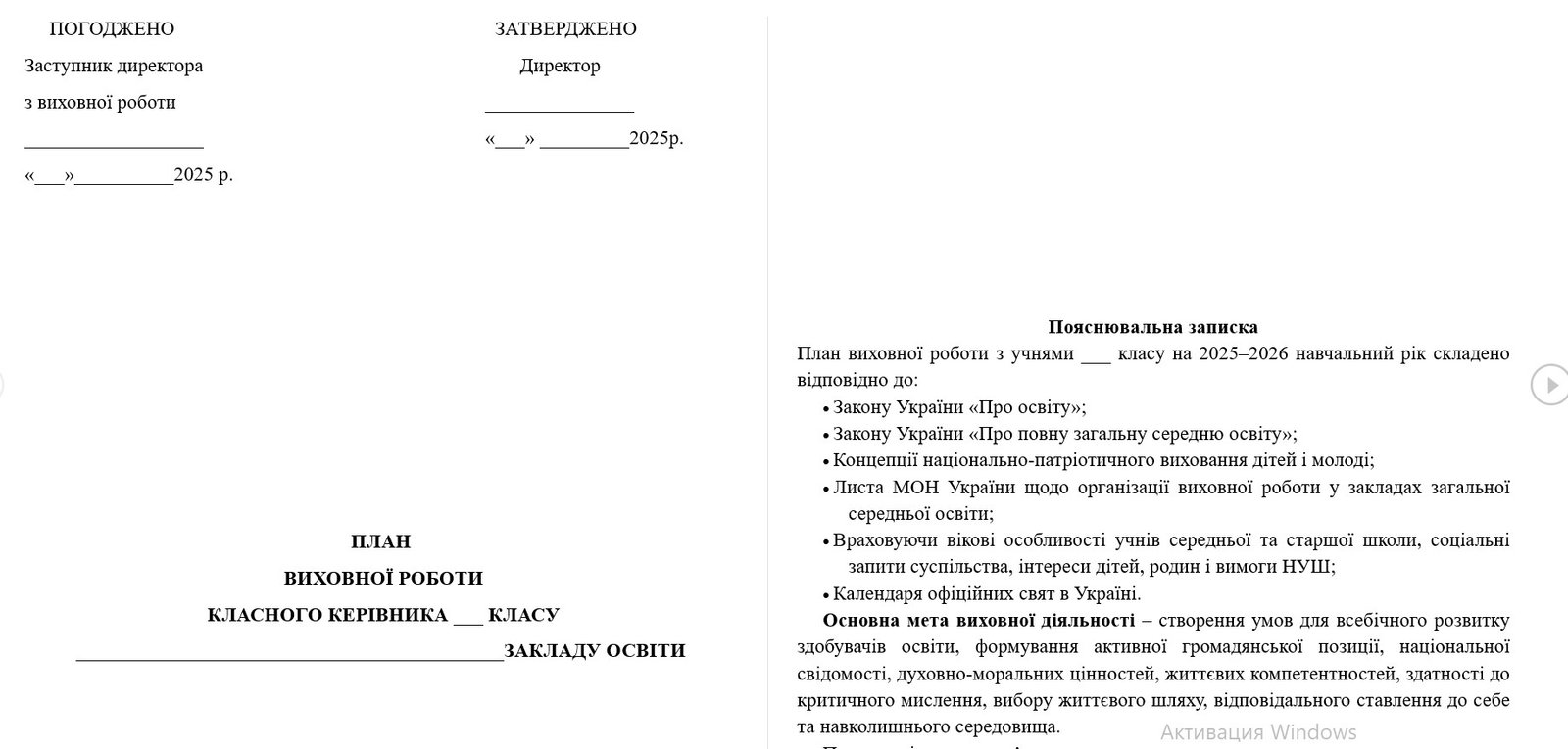 План виховної роботи класного керівника на 2025-2026 навчальний рік