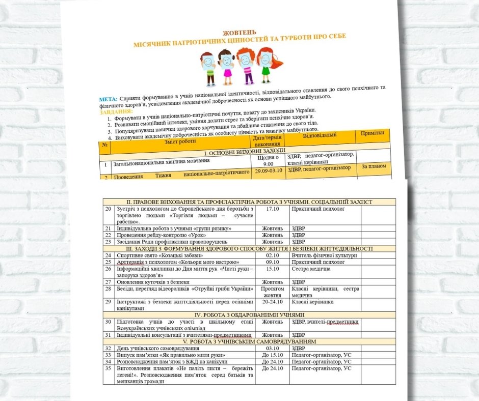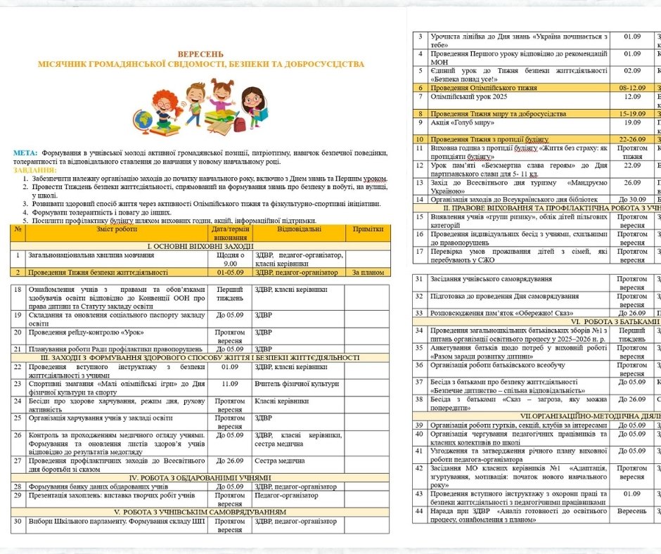 Річний план виховної роботи школи на 2025-2026 навчальний рік/План виховної роботи ЗДВР на 2025-2...