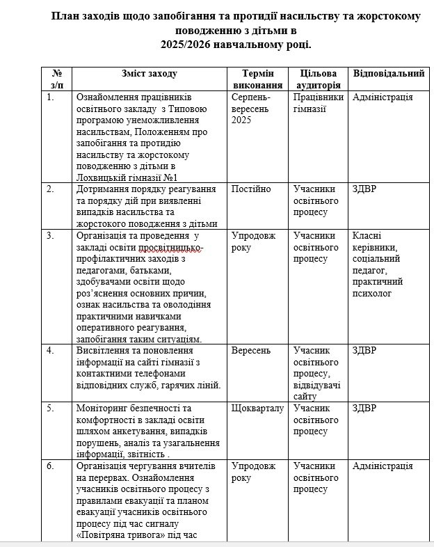 НАКАЗ ПРО ОРГАНІЗАЦІЮ РОБОТИ ЩОДО ЗАПОБІГАННЯ НАСИЛЬСТВУ ТА УНЕМОЖЛИВЛЕННЯ ЖОРСТОКОГО ПОВОДЖЕННЯ ...