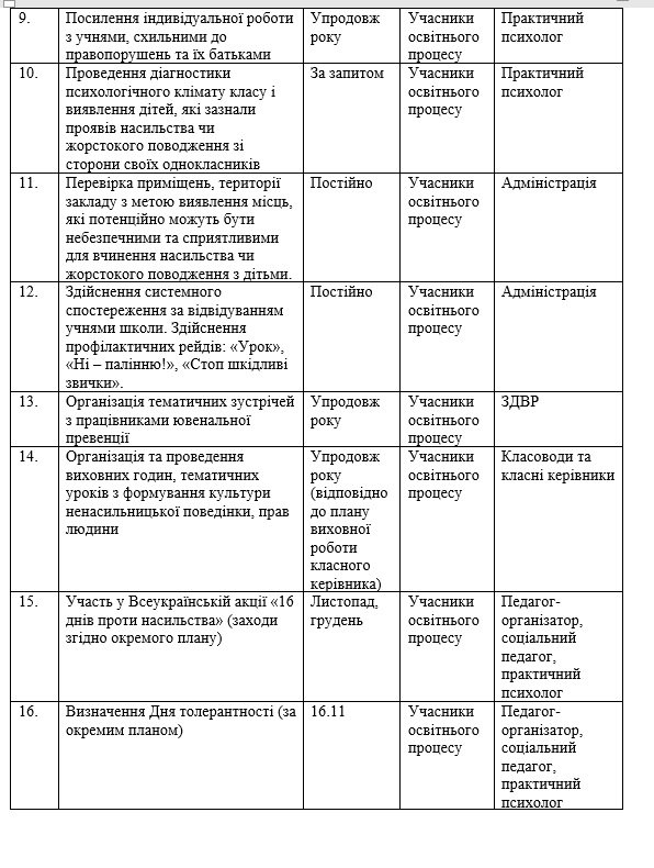 БУЛІНГ. ПРОТИДІЯ ТА ПОПЕРЕДЖЕННЯ БУЛІНГУ (ЦЬКУВАННЮ) В ЗАКЛАДАХ ОСВІТИ. ПЛАН ЗАХОДІВ ДЛЯ ЗАПОБІГА...