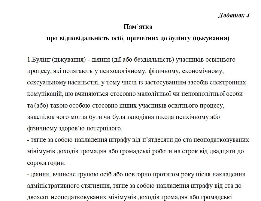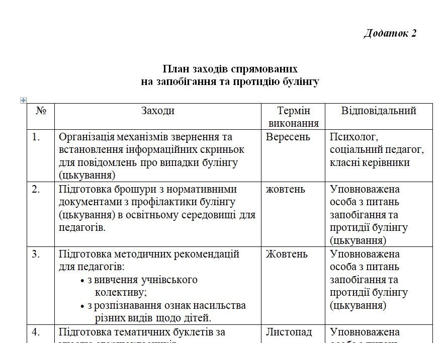 БУЛІНГ. ПРОТИДІЯ ТА ПОПЕРЕДЖЕННЯ БУЛІНГУ (ЦЬКУВАННЮ) В ЗАКЛАДАХ ОСВІТИ. ПЛАН ЗАХОДІВ ДЛЯ ЗАПОБІГА...