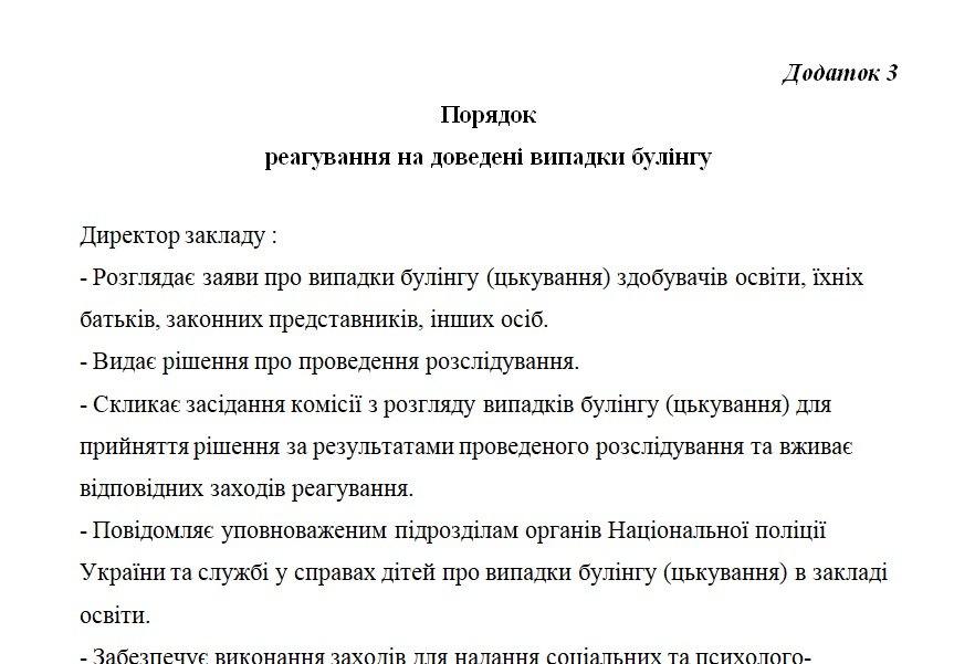 ПОЛОЖЕННЯ ПРО ЗАПОБІГАННЯ ТА ПРОТИДІЮ НАСИЛЬСТВУ ТА ЖОРСТОКОМУ ПОВОДЖЕННЮ З ДІТЬМИ