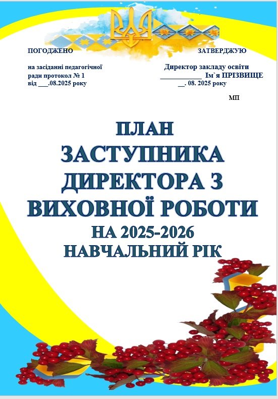 ПЛАН ЗАСТУПНИКА ДИРЕКТОРА З ВИХОВНОЇ РОБОТИ ЗАКЛАДУ ЗСО НА 2025-2026 наввчальний рік