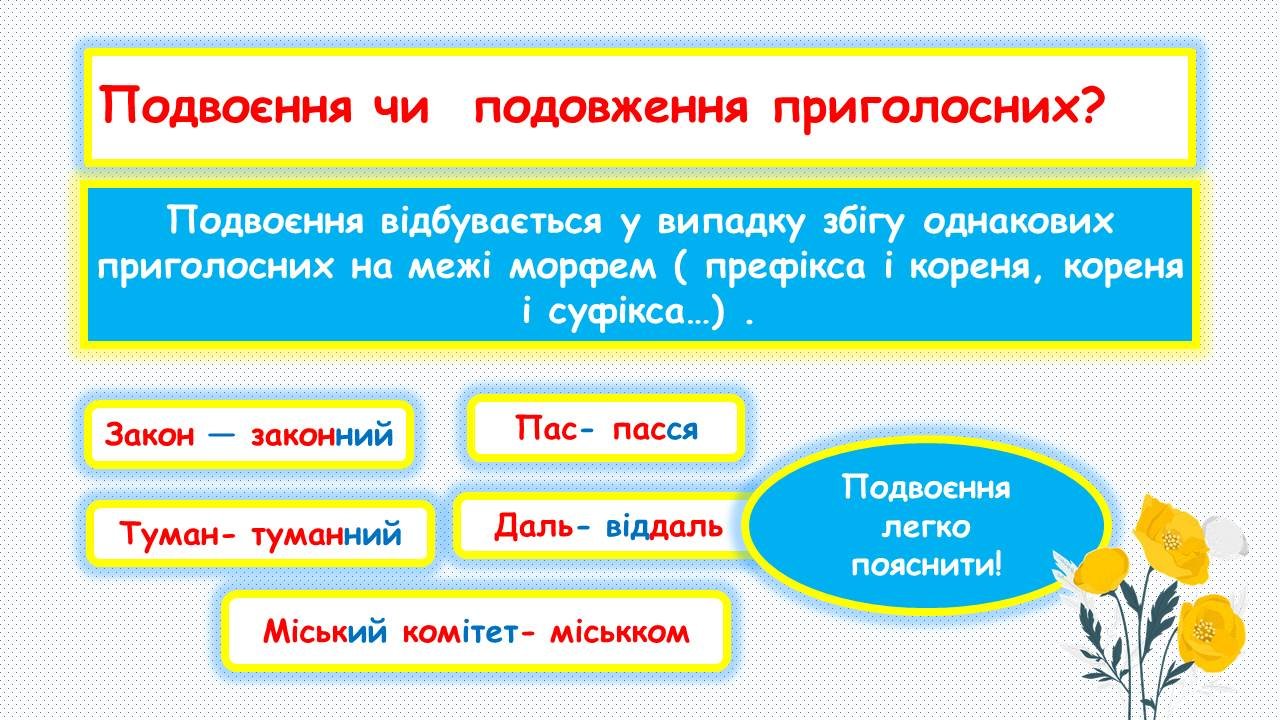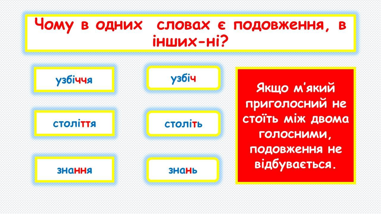В українській мові є слова, в яких пишемо дві однакові букви підряд. Подвоєння внаслідок збігудвох приголосних. Чому в цих словах пишемо подвоєні букви?Узагальнення вивченого.