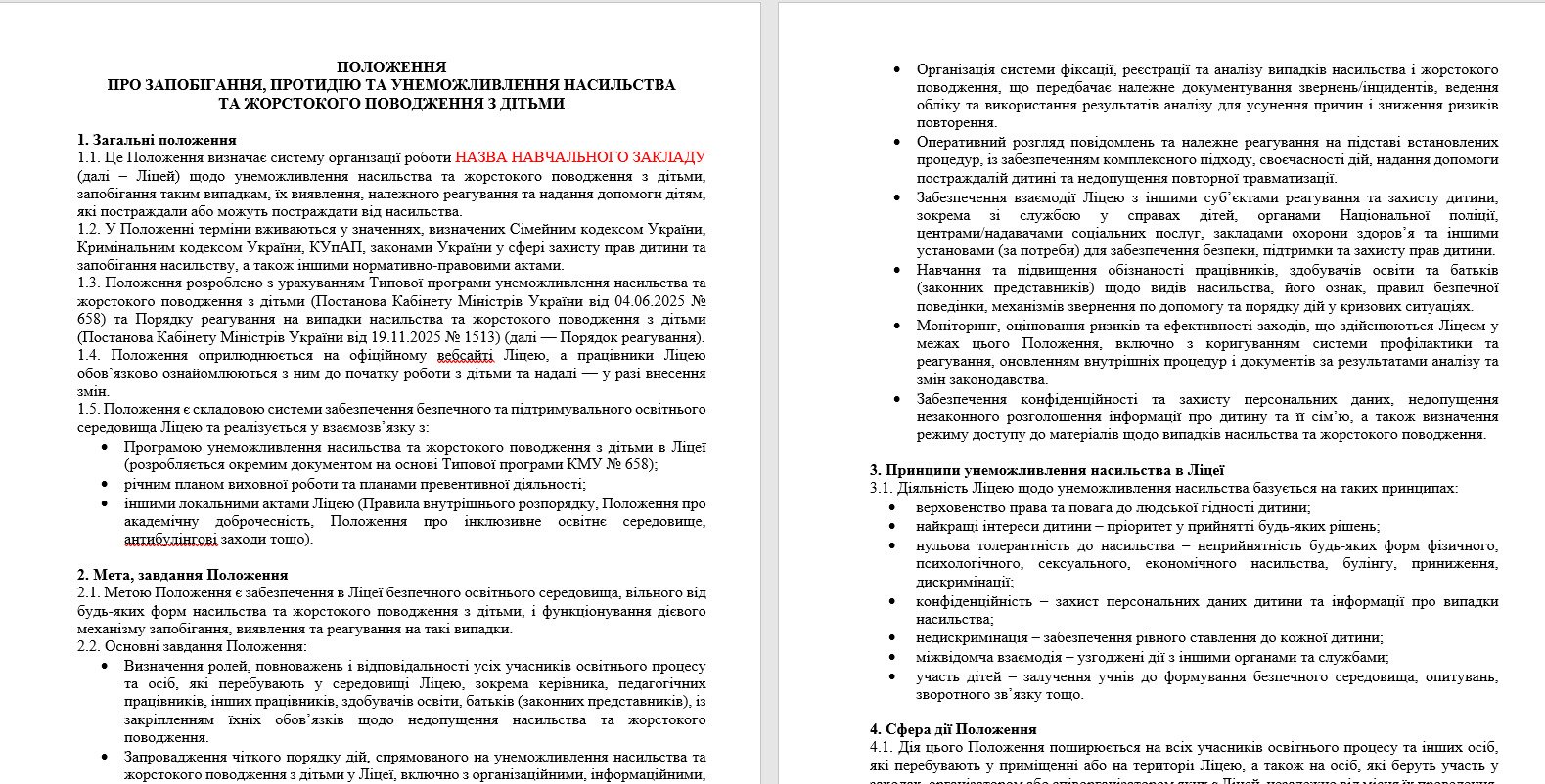 - Типової програми унеможливлення насильства та жорстокого поводження з дітьми (Постанова КМУ від 04.06.2025 № 658);