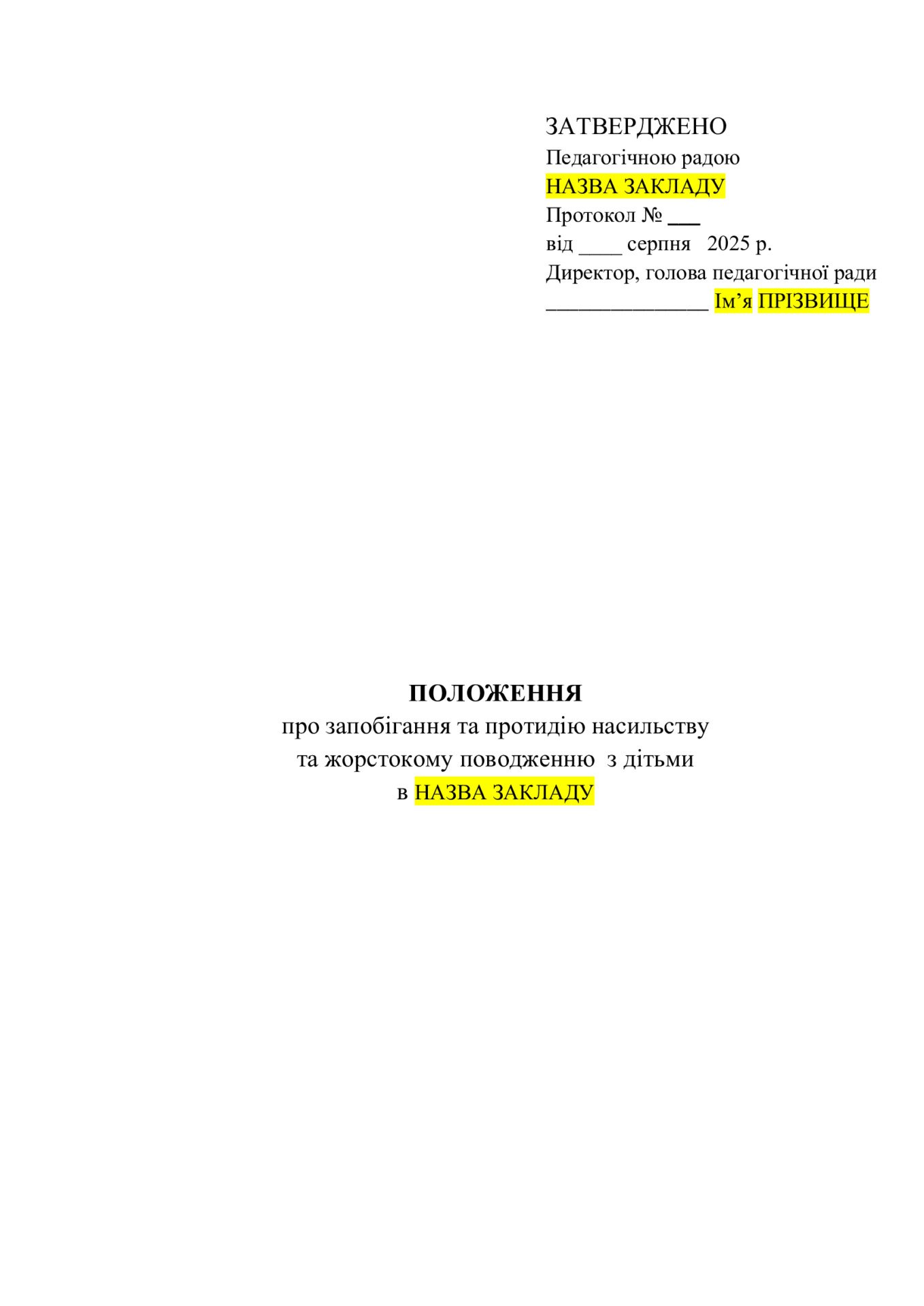 Ні. Всі матеріали, в тому числі «Положення про запобігання та протидію насильству та жорстокому поводженню з дітьми» можна придбати тільки через кошик на сайті.