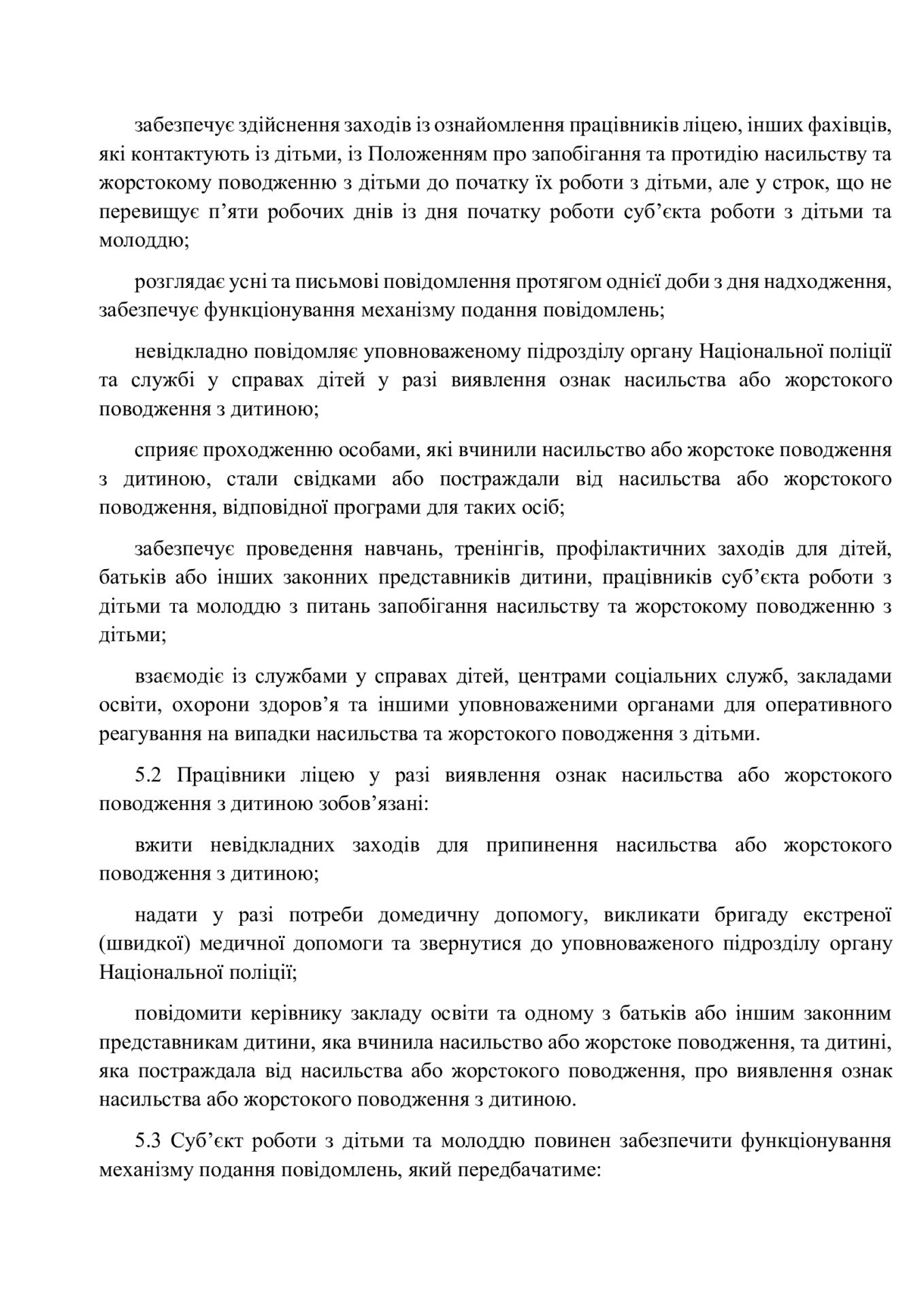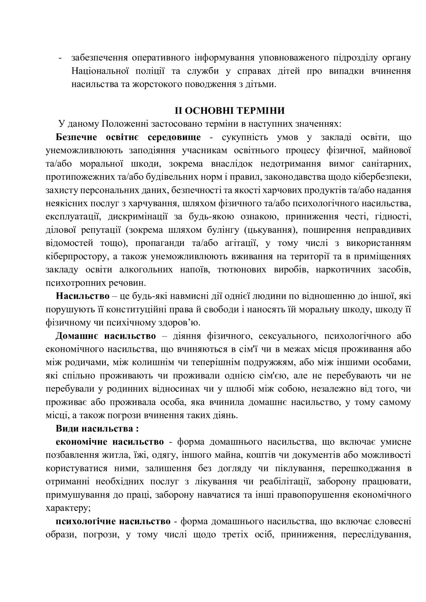 Відповідно до постанови Кабінету Міністрів України від 4 червня 2025 р. № 658, Положення про запобігання та протидію насильству і жорстокому поводженню з дітьми визначає основні засади захисту прав дитини. Документ регламентує комплексні заходи, спрямовані на створення безпечного освітнього середовища, виявлення випадків насильства, надання психологічної, соціальної та правової допомоги постраждалим, а також притягнення кривдників до відповідальності