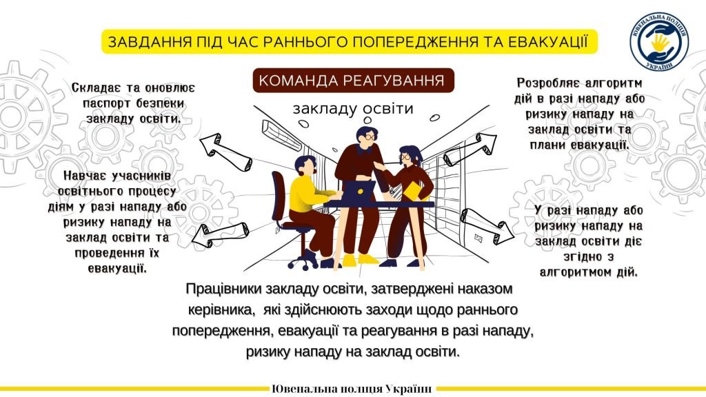 ПОРЯДОК РАННЬОГО ПОПЕРЕДЖЕННЯ ТА ЕВАКУАЦІЇ УЧАСНИКІВ ОСВІТНЬОГО ПРОЦЕСУ В РАЗІ НАПАДУ АБО РИЗИКУ НАПАДУ ЗАХОДИ, ЯКІ ОРГАНІЗОВУЮТЬСЯ ТА ПРОВОДЯТЬСЯ В ЗАКЛАДАХ ОСВІТИ ДЛЯ СТВОРЕННЯ БЕЗПЕЧНИХ УМОВ ПЕРЕБУВАННЯ УЧАСНИКІВ ОСВІТНЬОГО ПРОЦЕСУ ЗГІДНО з «Порядок раннього попередження та евакуації учасників освітнього процесу в разі нападу або ризику нападу на заклад освіти» Затвердженого наказом МВС УКРАЇНИ МОН УКРАЇНИ від 18.08.2023 № 685/1013 Із змінами і доповненнями, внесеними наказом МВС УКРАЇНИ, МОН від 19 липня 2024 року N 497/1013, від 12.11.2025 року № 789/1496