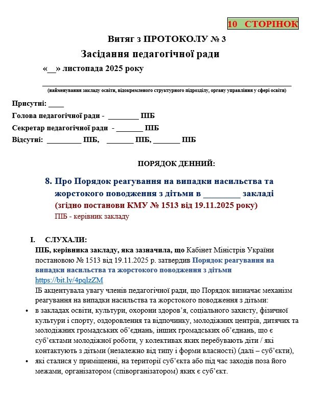 Коли я отримаю матеріал «“ПОРЯДОК РЕАГУВАННЯ НА ВИПАДКИ НАСИЛЬСТВА ТА ЖОРСТОКОГО ПОВОДЖЕННЯ З ДІТЬМИ” ( ЗГІДНО Постанова КМУ від 19 листопада 2025 року № 1513)»?