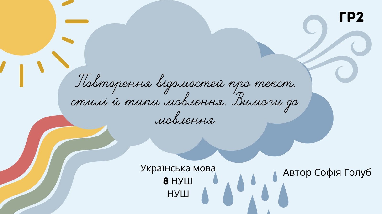 Урок мовленнєвого розвитку Повторення відомостей про мовлення, текст,стилі, жанри й типи мовлення