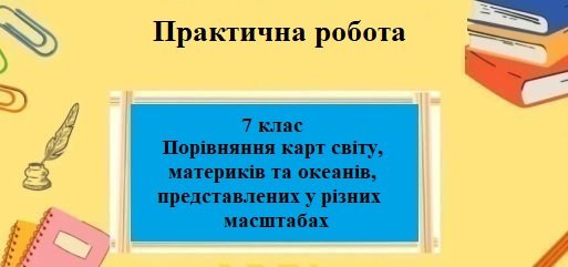 Практична робота з географії для 7 класу на тему “Порівняння карт світу, материків та океанів, представлених у різних масштабах”