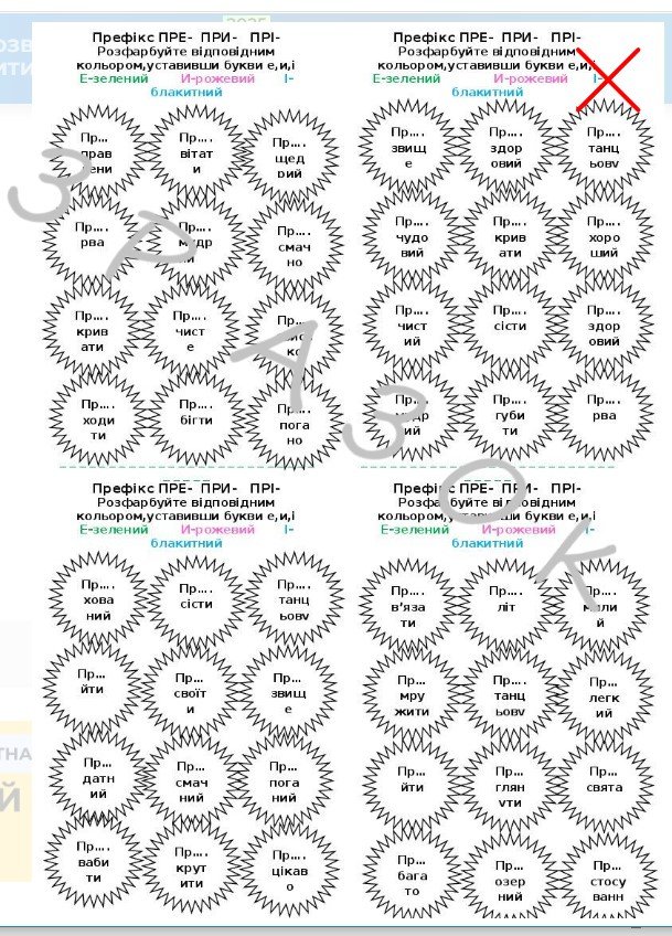 Як купити матеріал «Префікси пре-, при-, прі-. 5 клас. Роздатковий матеріал»?